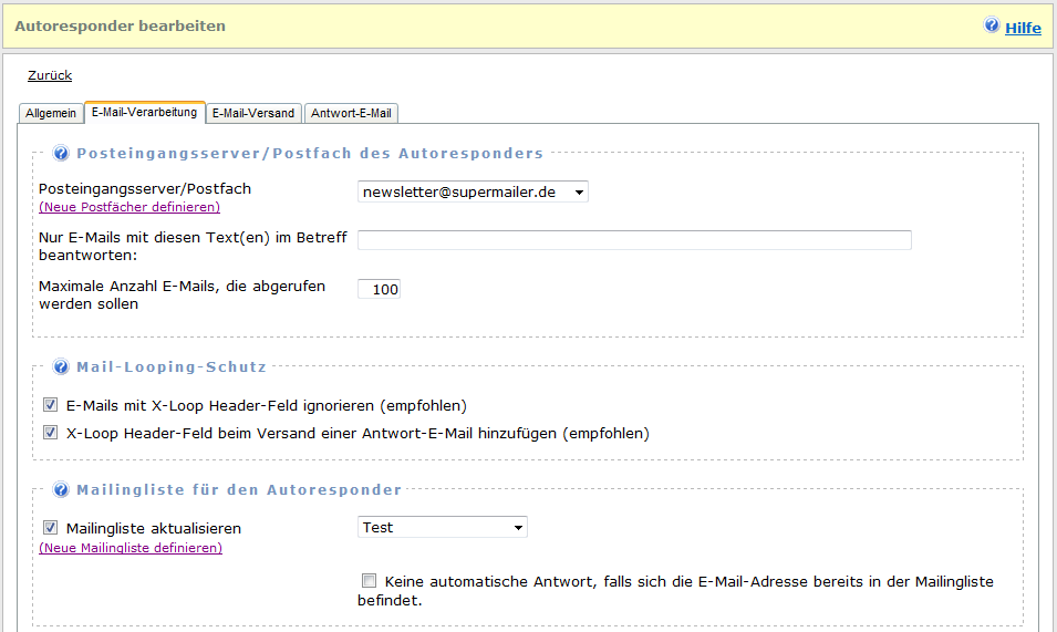 Autoresponder-Prüfung aus dem Postfach abgerufen werden sollen. Ist die